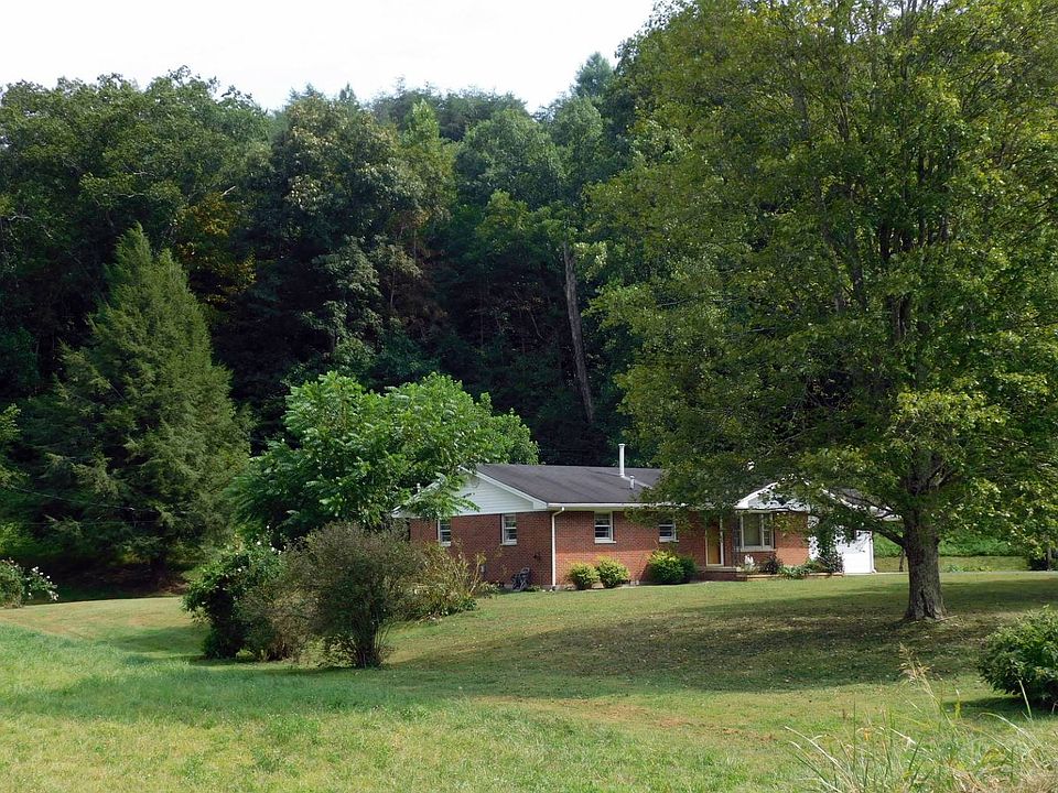 Brick home in nice location. Drive up black top driveway and entry this 3 bedroom one and half bath home. Nice living room with lot of widows and light with hardwood floors. Large eat in kitchen has new cabinets and countertops all appliances remain and yes lady's it has a dishwasher. Bedrooms all have hardwood floors and master bedroom has half bath. Both baths have been recently remodeled. Build on family room with fireplace and double doors out to back patio. Full dry walkout basement with high ceiling and working shower. Basement has room that could be made in to fourth bedroom. Nice flat 2.4-acre surveyed lot with lots of room for large garden and small livestock. Has fruit trees and two large outbuilding. Well and county water meter on property. Central heat and air with gas backup. Just one mile from Hwy 460 in the beautiful Grassy Creek area