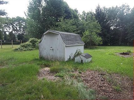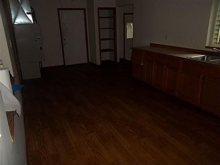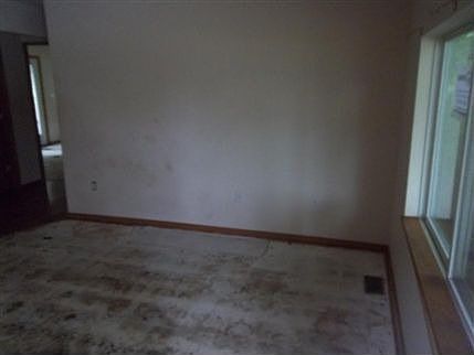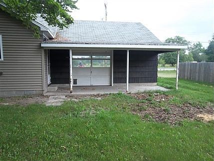Exterior Features: Vinyl siding, block foundation, windows intact. Has soffits,no eaves present. Front porch. Shingled roof. Cement driveway. One anda half car attached garage. Covered awning on back of home. There is ahandicapped ramp to one of the bedrooms. Two outbuildings present. Thishome sits on a very large and deep city lot. House is in fair condition. Interior Features: This is a 3 bedroom, one bath home in the city. Each bedroomhas a ceiling fan. Kitchen with sink and cupboards only. No dining room.Has a living room. Water heater and furnace present. Bedrooms andliving room has no flooring. Kitchen flooring looked usable. Home has acrawl space