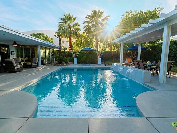 Whether youre looking for a weekend getaway or your forever home, youll love this charming stunner. From the dramatic double door entryway that whisk you inside, your eyes are immediately drawn back outside, through the walls of floor to ceiling windows and sun-drenched rooms, to the sweeping views of your glamorous and recently remodeled backyard oasis, blurring the lines between inside and outside living spaces. The main living room sits opposite the kitchen and is separated by a spectacular stone wall with a fireplace adding to the architectural detail of this Indian Canyons property. The center of this home is the chic, circular concept, chefs kitchen and entertainers dream, with expansive counters, double dishwasher and oven, wine cooler, sub zero fridge and seating for 8 at the island!After the party, R&R awaits your guests to one side of the home, with 2 bedrooms, one with an en-suite, and each has a private slider for access to the outdoors. The primary suite is on the opposite side of the home, creating a true retreat with maximum privacy- complete with a spacious bathroom, large soaking tub and step down reading nook, wrapped in windows.Step outside, pick a door, and youll be awestruck by the spectacular views you can enjoy while swimming in the large sparkling pool or spa. Situated on one of the finest streets in the old Canyon Country club with homes by Stan Sackly and Hal Levitt this contemporary home stylishly represents its Sierra address. Smart Palm Springs living with owned solar, two new Tesla power walls, EV charging, ceiling speaker system and remote access to control most amenities.