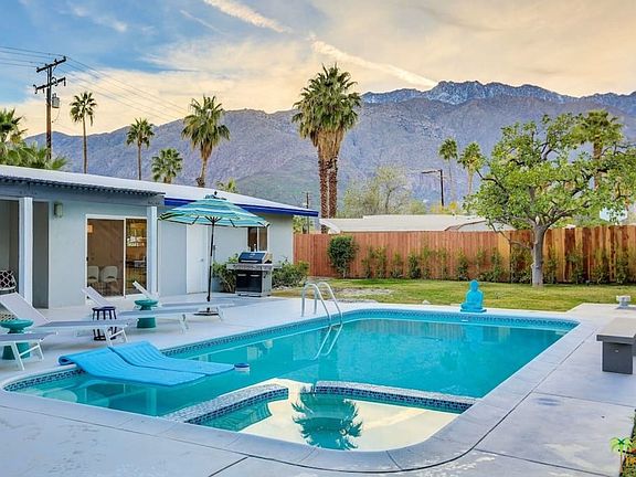 Mid-Century Mod smashes through with Style and Personality! Built in 1956 and recently renovated, this Mid-Century Modern Ranch is all about Style and Smart Design. From the moment you step inside onto the new Porcelain Tile Floors, you will notice the attention to detail. The list of improvements is long... New interior/exterior paint, dual pane windows/doors, LED lighting, New A/C unit. Updated kitchen has new Quartz counter tops, subway tile & new appliances. Newly refaced fireplace w/new mantel, Remodeled baths & much more. The backyard is an entertainers dream! The large pool/spa has been redone (acid washed & re-tiled), adding new Electronic pool controls & LED Lighting. Enjoy the beautiful mountain views from a cozy Seating area around your fire pit while watching your guests play a game of Bocce Ball on the new court. New landscaping, new lighting & new fencing. All of this within walking distance to downtown!! Offered Turnkey Furnished!