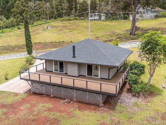 Privately located at the end of a cul-de-sac, at an elevation of 3317 feet above sea level and surrounded by the Waihou Spring Forest Reserve, this charming home beckons you with its irresistible charm and meticulous remodeling. A true haven for nature enthusiasts and those seeking a contemporary yet cozy retreat. This residence offers an array of delightful features. Step inside and be greeted by the high ceilings that lend an airy and open ambiance to the interior. As autumn and winter set in, you'll find solace beside the fireplace, its crackling flames casting a warm and inviting glow that's perfect for those early mornings or late evenings. The heart of this home lies in its functional design, where careful attention has been paid to every detail. An expansive Trex patio invites you to revel in outdoor living at its finest, a space primed for lively BBQ gatherings with friends and family. From here, take in the breathtaking panorama of the forest, a tranquil vista that transforms with the sunlight changing throughout the day. Crafted with care to accommodate evolving needs, it has artfully designed this home to adapt as your Ohana expands. Serving as the main dwelling of this CPR, it harmoniously marries convenience with thoughtful ingenuity. Modern appliances make daily living a breeze, reflecting the seamless blend of form and function throughout the home. Beyond the confines of your doorstep, a world of adventure unfolds. Immerse yourself in the great outdoors with an abundance of activities at your fingertips. Embark on hikes along the two popular Waihou Spring trails, each offering its own unique allure. Choose the leisurely 1/4 mile upper trail for a tranquil stroll or opt for the slightly more challenging 1-mile path that winds through fragrant Eucalyptus trees, accompanied by the symphony of songbirds. In this captivating abode, life intertwines effortlessly with nature, inviting you to embrace tranquility, create lasting memories, and savor the pleasures of a truly transformative living experience. Welcome to a home where modern comfort meets the untamed beauty of the wilderness, a place where every moment is a celebration of life's simple joys.