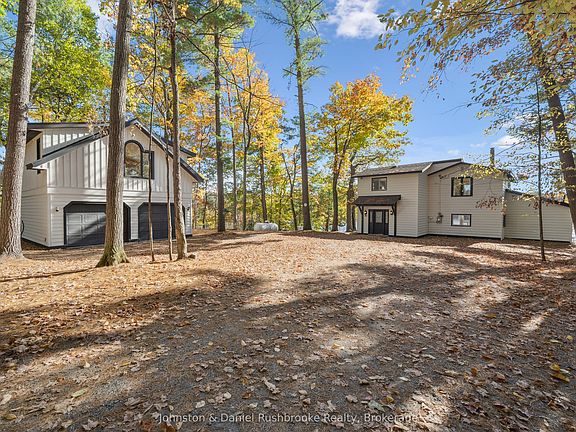 Welcome to Brandy Lake, one of Muskoka's most family-friendly and sought-after lakes, just minutes from the shops and restaurants of Port Carling and only two hours from the GTA. This inviting property offers 330 feet of private south facing shoreline, gorgeous sunsets and nearly an acre of land with a gentle slope to the water and level terrain around the cottage and garage, making it easy for everyone to enjoy the outdoors. The winterized three-bedroom, one-bathroom cottage is warm and welcoming, featuring a bright kitchen, open living area with stunning lake views, and a cozy dining space, perfect for family gatherings. Recent updates include new flooring in the bedrooms and laundry area, and new decking across the front of the cottage. The winterized coach house above the insulated and heated 2 car garage provides a great guest space with a living area, kitchenette, one bedroom, new flooring, and a newly completed 4-piece bathroom. The property has been thoughtfully landscaped with new stone and mulch walkways leading to the waterfront, where a rebuilt dock with new decking and joists offers an ideal spot for swimming, sunbathing, and boating. With a sunny southern exposure, you'll enjoy all-day sunshine and long afternoons by the lake. A new septic system rated for five bedrooms provides peace of mind and flexibility for future expansion, including the potential for a one-storey boathouse. The circular driveway and parking for 10 cars adds convenience. Brandy Lake is ideal for families who love water skiing, tubing, paddle boarding, and canoeing. It offers all the classic cottage activities without the premium price of the big lakes. Featuring privacy, year-round road access, and a peaceful setting, this beautiful Brandy Lake property is a rare opportunity just minutes to both Port Carling and Bracebridge - welcome to your Muskoka escape.