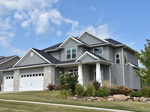 Elevate your everyday existence in this home with warm, rich woods. Nice bright front office. Great room features large windows & corner fireplace. Kitchen has island w/copper pendant lighting, granite countertops, stainless steel KitchenAid appliances, & wine/drink serving station.Flow into the bright open dining area that is encased in windows providing views in every direction.Maintenance free deck.Main floor laundry w/abundant cabinets & drop zone. Second level has master suite with tray ceiling, large walk-in closet, heated floor, soaker tub w/separate tiled shower & double bowl vanity. To accommodate everyone, there are 3 additional bedrooms on the second level, one with it's own full en-suite; the other 2 bedrooms will enjoy the large full bath w/double bowl vanity.LL has rec room, wet bar, 5th bedroom & another full bath. Zoned heating/cooling. 3-stall garage/drains. Nicely landscaped. Great area easy access to Lowe's Park, fitness centers, schools, daycare. More sq. ft. More value.