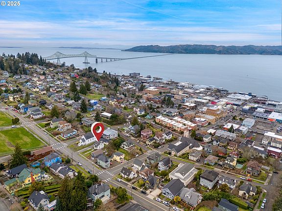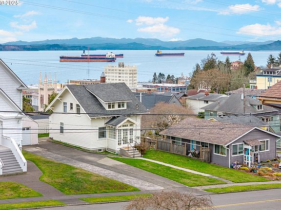 Historic Craftsman bungalow overlooking Astoria and the mighty Columbia River. Nestled among other historic properties with beautiful views from most rooms, it’s easy to see why this home has been owned by the same family for the past 109 years. Unique architectural details tell the story of its past, including salvaged French doors and bedroom doors with transom windows from a long-lost Astoria hotel, plus hardwood floors, and a classic clawfoot tub. Modern improvements include upgraded electrical, furnace, roof, and sewer repairs, plus gas cooking! Situated on a surprisingly level lot, the home features a detached one-car garage and a spacious driveway with ample parking. Its placement toward the back of the lot allows for exceptional gardening potential. Just blocks from downtown Astoria, enjoy easy access to restaurants, boutique shops, cafés, and the Astoria Riverwalk.