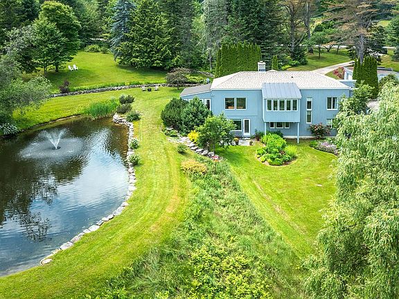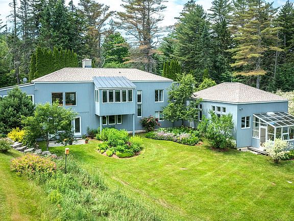 Open, airy and expansive contemporary nestled in the woods and hills of Vermont. The rolling lawns and extensive gardens add color and constantly changing vistas as the seasons progress. On the main level, you’ll find the original primary bedroom with its own full bath. The stainless steel-applianced kitchen was redone in 2022. Fabulous east-facing breakfast nook with an island overlooking yards and woods as the bears and deer wander by. Spacious screened-in porch with pond views. Living room boasts a Jotul wood stove that will both enrich and warm your social gatherings or just make your lazy Sunday winter mornings snugger and more satisfying. But that’s just half the story! On the lower level, you’ll find a master suite with a bookcased sitting room, a walk-in closet and another full bath, this time complete with sauna. Down the hall is a guest bedroom (this bathroom has a jetted tub as well as a shower). And then two expansive rooms in which to let your imagination run wild. Media room? Man cave? Exercise space? Whatever you wish. And then there’s the greenhouse, the perfect site to support all your green thumb activities. A free-standing two-car garage with attached tool shed rounds out this unique and extraordinary property. Make it your own!