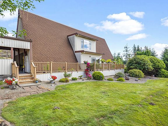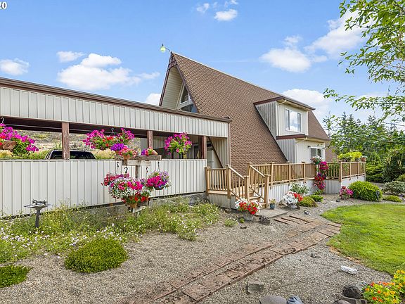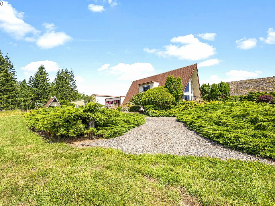 Truly Unique A Frame with wrap around Trex decking to enjoy the fabulous territorial views! The Upper Master Suite has a large walk in closet with a loft. Main living area has Vaulted ceilings, Propane fireplace and a wall of windows to enhance the beauty of the outdoors. The home also features separate dining area along with a heat pump to keep you warm in the winter and cool in the summer. All of this is situated on 4.38 acres beautifully landscaped yard and pasture area.