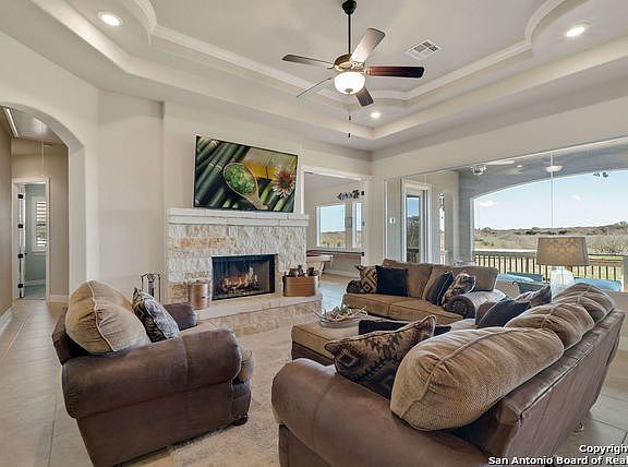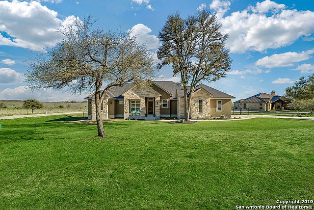 This is it! Like new open concept 1 story home on 1 ac lot in desirable Spring Branch. Enjoy peace & quiet while being close to the city/amenities. Full of light! 4 bdrms, 3 baths + game room loaded w/custom touches throughout. High ceilings, crown molding, 8' doors, gourmet kitchen, gorgeous master w/dramatic ceiling detail, huge closet and walk-in shower. Oversized garage. Bonus inclusions- shutters, fence, lighting & hardware. Watch the deer & southern skies from your covered patio. Don't miss it!