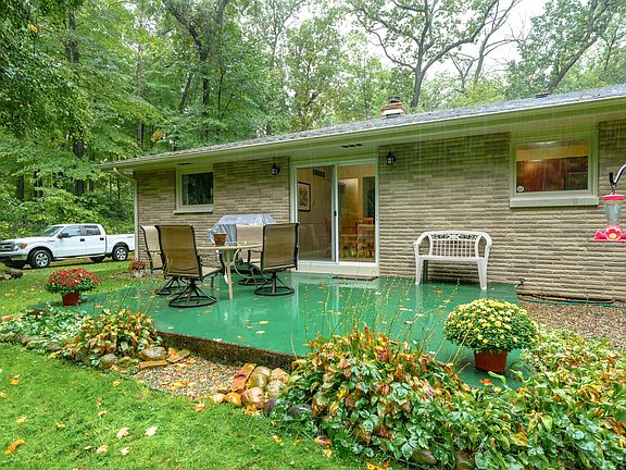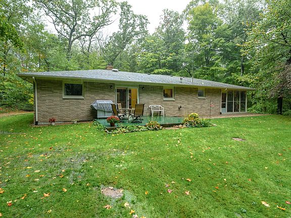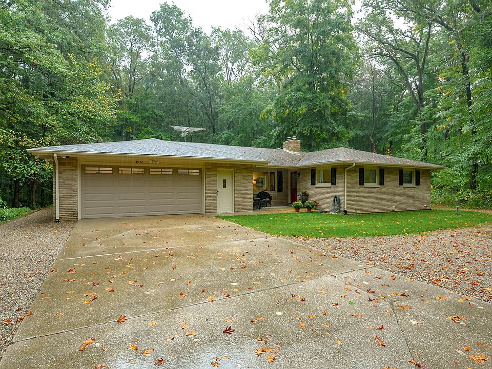 Loads of 1960's ranch limestone architecture, with almost three acres to roam. Three main floor bedrooms, 1.5 updated baths, a second full bath stubbed in the basement. Generous kitchen with modern appliances (all which remain with the home) and the 1/2 bath on the garage end. Full basement with a neat workshop area. The antique pool table can stay. Expanded two-car garage. Wood burners on both levels. Also has a heat pump, with central air. Loads of parking and turn-around area. A beautiful groomed, wooded lot that is 570' deep; you can harvest your own wood. A newer private water supply and municipal water available at the street. This home has a ton of 60's curb appeal with its limestone and roof features. Lower Oshtemo Twp taxes and Kalamazoo Promise-qualified.