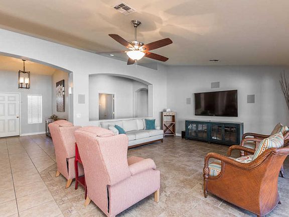 Beautifully maintained one-owner home on a large lot with 4 bedrooms & 2 baths in 2450 SqFt. Nice open great room floor plan with split bedrooms. The kitchen has oak cabinetry, granite countertops, glass tile backsplash, gas cooktop, double ovens and pantry. The large backyard features a fenced pool with rock waterfall, full-length paver patio with ceiling fans & roll-down shade, built-in BBQ island and side yard with garden area. The master bedroom has a private bath with dual sink vanity & walk-in closet. Other features: 2.5 car garage with cabinets, bay window in Bedroom 2, built-ins in Bedroom 4, tile & wood laminate flooring throughout, vaulted ceilings, laundry cabinets & much more! See today!