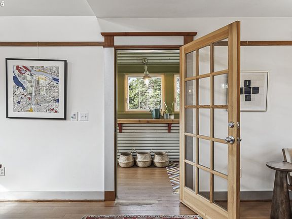 Step into a strikingly reimagined Craftsman, where a clever mudroom entry leads to elevated living spaces with rich wood details, vaulted ceilings, and exquisite artistry. The open kitchen, bathed in southern light, is perfectly positioned at the heart of the home, featuring warm wood cabinets and custom countertops crafted from reclaimed materials. The primary bath has been stylishly remodeled with navy hex tiles, custom lighting, storage, and a gorgeous walk-in shower. This thoughtful floor plan offers separate bedrooms on each level for maximum flexibility—perfect for working from home, hosting guests, or multi-generational living. On the ground level, you'll find a space primed for an ADU, complete with private entrance, expansive wet bar, and full bath, offering potential for additional income. This eco-fresh home includes a new Mitsubishi heat pump with AC, dual-pane windows, and zonal heating. The top-floor bedroom boasts incredible light play, sunset and park views. From the main level, step through the kitchen nook onto the new covered back deck—perfect for entertaining—with a built-in bench seat and storage. Outside, the carefully curated landscaping features a thriving raspberry trellis, a drip irrigation system, and numerous perennials that will come alive this spring, creating a lush urban oasis. The mini-garage includes a rolling workbench offering an ideal indoor-outdoor creative space for DIY enthusiasts. Perfectly located across the street from a park, this home provides easy outdoor access for children and pets. Additional updates, including new water service and a sewer line replacement, offer peace of mind. Coined The Pilot House by its previous owners, this architecturally significant, eco-friendly home sits in the heart of Woodlawn’s Dekum Triangle- offering Woodlawn Coffee, Breakside Brewery, P&Q’s Market, Firehouse, Tamale Boy, Woodlawn Park, and more. This one-of-a-kind home embodies the spirit of Portland’s artistry and craftsmanship. [Home Energy Score = 8. HES Report at https://rpt.greenbuildingregistry.com/hes/OR10102610]
