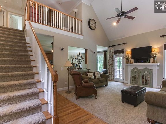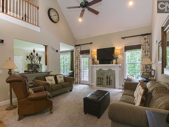 Custom home on almost 1 private acre. Close to Schools, interstate access and Lake Murray. Foyer with cathedral ceiling opens to Great room with gas log fireplace and built in tv nook above mantle. Large eat-in kitchen with bar, granite counter-tops, smooth surface stove, pantry, and opens to formal dining room. Master bedroom on main floor features double walk-in closets, separate shower, double vanities with granite-tops, soaking jetted tub, and water closet. Guest/inlaw suite bedroom and full bath on Main. Stairwell leads to a loft, 2 BRs, Shared bath and bonus room with closet. Private backyard with deck, Covered patio and room for a pool. Store your boat on the side yard, Lake Murray access 1 mile away
