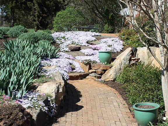 The house is tucked away on 4 acres of land surrounded by the beautiful Meriwether Springs vineyard on one side and woods on the other. It has been professionally landscaped with stone walls and steps framing the entrance. There is also an outside seating area. Built in 2007, it is a two story custom built Timber frame single family home. A central handcrafted stone chimney serves fireplaces on both floors. It has an open floor plan of 2500 square feet. On the lower level is a large light filled kitchen and a second bedroom. A dining area and living room abut the fireplace and entertainment center. There is also a bathroom, laundry and utility room and direct access through sliding glass doors to the back woods. There are storage spaces, closets and built in bookshelves throughout the house. On the upper level is space for one or two workspaces (or nursery), a master bedroom with adjoining master bath and a sitting area. There is a wraparound veranda on two sides. A short walk through the woods will bring you to a large lake suitable for fishing