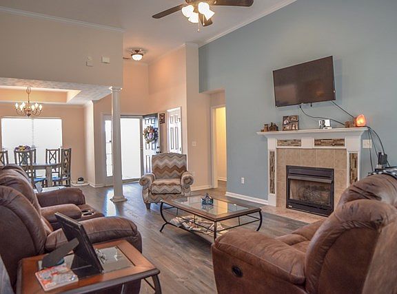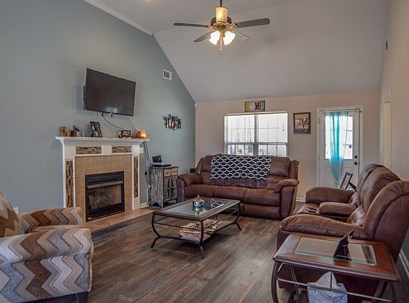 Lots to offer! Kitchen updates of granite counters, back splash, stainless finish appliances, plus bartop, breakfast area and pantry. Open living space, vaulted great room with gas log fireplace.Wonderful pre finished wood floors in great room, dining, kitchen, breakfast, owners bedroom and 2 other bedrooms. Split bedroom plan. Large privacy fenced backyard has patio, deck for relaxing or entertaining.