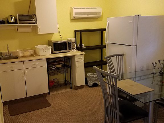 Includes Fridge, kitchen area, microwave, furnishings including queen bed, two dressers, kitchen wares, dining table TV stand/entertainment area. Month to month lease unit is apartment behind main home. Utilities include. Water, electric, WIFI