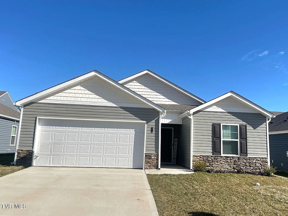The Macon floorplan is available at Johnson Farms in Greeneville. This plan features a smart and functional open concept design with great features. Enjoy owning a low maintenance, one level home. The foyer opens into a spacious kitchen with a pantry and breakfast bar. The kitchen overlooks the living room. The primary bedroom is located at the back of the house for privacy and includes an en suite bathroom and walk in closet. An additional two bedrooms in the front of the home share a full bathroom. The laundry room is conveniently located near the kitchen. This home features 8ft Ceilings on first floor, Shaker style cabinetry, Solid Surface Countertops with 4in backsplash, Stainless Steel appliances by Whirlpool, Moen Chrome plumbing fixtures with Anti-scald shower valves, Mohawk flooring, LED lighting throughout, Architectural Shingles, Concrete rear patio (may vary per plan), & our Home Is Connected Smart Home Package. Seller offering closing cost assistance to qualified buyers. Builder warranty included. See agent for details.
