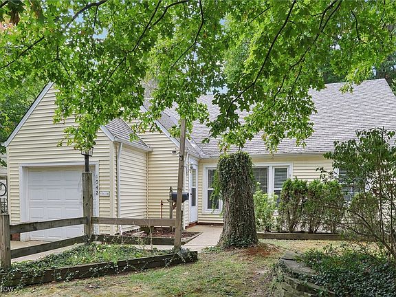 Charming Cleveland Heights bungalow on a quiet old-world brick road. Spacious living room includes built-in shelves/cabinet, large front picture window, and a connected dining area. Adjacent bright kitchen features neat retro metal cabinets, knotty pine beam and accents stainless steel appliances, and a washer/dryer combo laundry area. Two bedrooms on the main floor, along with full recently renovated full bathroom. Upstairs features knotty pine siding, with built in desk, drawers, cabinets in the study, and another bedroom attached. Large storage corridors on both sides. Exterior has many hardscaping and landscaping features, along with deck, storage shed, and charming bridge in rear. Attached garage for extra convenience. 2 blocks from Denison park, a couple more to hiking at Euclid Creek Reservation, and a short drive to University Circle/UH/Cleveland Clinic or out east to I-271. Will be POS-compliant.