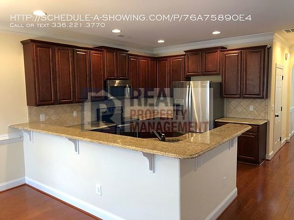 Spacious, low maintenance end unit townhome is calling your name! This 2-bedroom, 2.5 bath home, located in the Wyngate Village Townhome community, has been looked after and is ready for your arrival. Amenities include a large open kitchen with granite countertops & stainless-steel appliances, a pantry, gas logs in the living room, a half bath and a private fenced patio. Hardwood floors, tile, and carpet throughout! The upstairs offers 2 bedrooms with a loft space, 2 full baths, and a washer/dryer closet. The master bedroom has a spacious master bath with a garden tub, separate shower, walk in closet and double sink vanity finished with rustic bronze fixtures. 1 car attached garage and paved driveway. Next summer, make your way to the clubhouse to enjoy the resort style pool! Pets ok! 16 or 25 Month Lease Terms Available, Security Deposit and Lease Administration Fees Apply Copy and paste the following link in your web browser for convenient scheduling: AVOID RENTAL SCAMS: Real Property Management is a licensed Real Estate Agency that exclusively markets and represents this listing. We do not advertise on Craigslist. We would never ask you to wire money, request funds through a payment app for initial rent, deposits, or take the key after your showing to move-in. 1 Car Garage Bronze Bath Fixtures Carpet End Unit Fenced Patio Garden Tub Gas Logs Granite Counters Hoa Loft Upstairs Neighborhood Pool Open Kitchen Pets Allowed Private Fenced Patio Vaulted Ceilings Walk In Shower