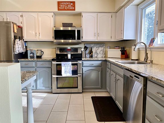 As you enter 1042 Sarah Ln you will immediately notice the bright and sunny feel of this home. The pristine open concept 1st floor has great sight lines for entertaining family & friends. The kitchen has been beautifully updated with granite counters, SS appliances, tile floors, freshly painted cabinets & a breakfast bar that can seat up to 4 people. Sliding doors off the DR lead to a large deck. Gorgeous hardwood floors & freshly painted walls throughout the 1st floor add to the beauty of the space. Continue down the hall to the large master BR with a sizable closet and 2 additional BR's. The main bath has ample room & a large vanity with double sinks. LL family room has a brick wood burning fireplace with sliding doors to a covered patio that leads to the large level backyard. Half bath conveniently located on the LL. The 4th BR is also on the LL along with 2 bonus rooms, one with build in shelving. Utility room has newer high efficiency furnace, HWH & front load washer & dryer.
