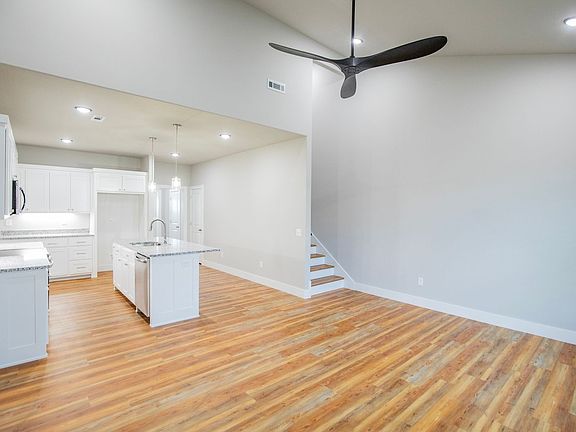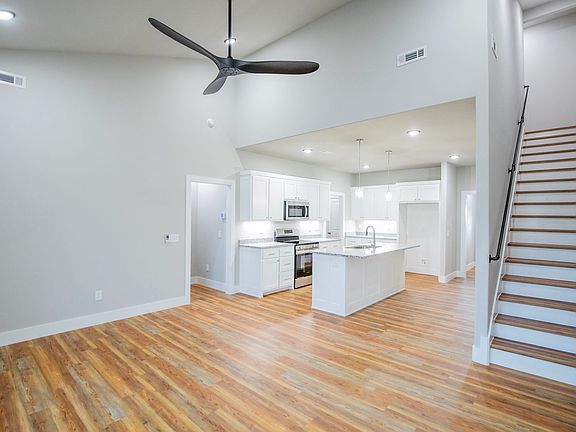 3 bedrooms 2 1/2 baths, Master on main level. Wood style flooring throughout. Kitchen features custom cabinets, stainless appliances, granite counters, large pantry. Living room has high ceiling and is open to the kitchen and access to the back covered patio. Master bedroom includes walk in shower double sinks and large closet. Upstairs has 2 large bedrooms and 1 full bath, bonus room/office and additional storage room, garage is insulated and included an insulated garage door. Lawncare is included.