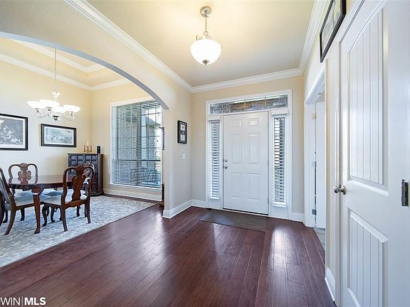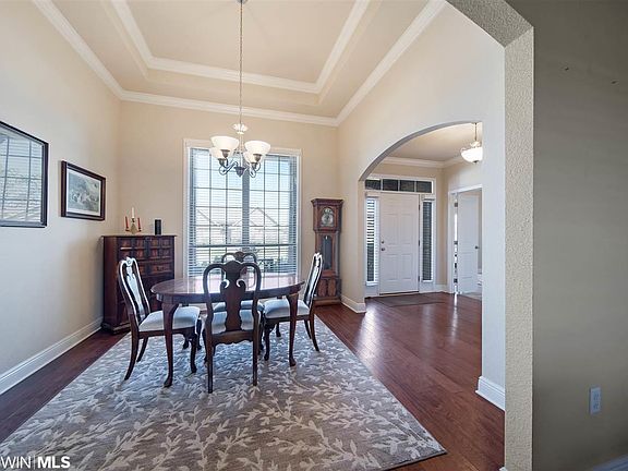 Pebble Creek is one of Foley's most desirable subdivisions. This home has an open floor plan making it feel very spacious inside. The arched entryways are a great addition. The dining room and room feature trey ceilings, crown molding and baseboards with hardwood floors. The kitchen overlooks the living room and breakfast nook. The kitchen features beautiful granite countertops ands stainless steel appliances. There is plenty of counter and cabinet space. The master bedroom has trey ceilings, tile floors, and a sitting area. The door leads to an enclosed back porch. The master bath has a double vanity, garden tub, separate shower, and a walk-in closet. The Bonus room can be used as an office or bedroom. The backyard is fenced and includes an enclosed Patio.