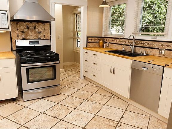 UPDATED SPANISH MEDITERRANEAN, REMODELLED KITCHEN WITH STAINLESS STEEL APPLIANCES AND TILED BATH, HARDWOOD FLOORS, DINING ROOM WITH GORGEOUS BASEBOARDS, BUILTIN CABINETS, CROWN MOLDING THROUGHOUT, BASEMENT FOR STORAGE, GARAGE WITH INTERIOR ACCESS, LAUNDRY AREA, GORGEOUS GARDEN WITH DECK.
