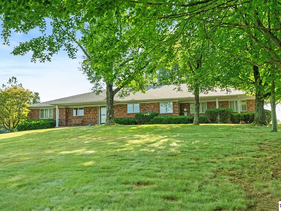Discover the perfect blend of serenity, space, and opportunity with this rare 48-acre farmstead located just outside of Elizabethtown. Nestled in a peaceful, bucolic setting, this 4-bedroom, (2.5-bathroom single-family home offers expansive views, versatile living space, and income-generating farmland. Built in circa1980 and offering approximately 4,556 sq. ft. this home has a solid frame and tremendous potential. Inside, you'll find two kitchens – a kitchen on the main floor as well as a full kitchen in the walk out basement. The home has two brick fireplaces (lower-level vented and woodburning with a blower and upper-level on propane). It also offers generous living and storage space across both levels. A walk-out basement includes a large bonus room (not classified as a bedroom due to lack of egress) that’s ideal for a home office, gym, or hobby room. Enjoy breathtaking views of your land from the oversized rear balcony or relax on the lower-level patio and garden area. Recent upgrades include a newer HVAC system and roof (within the last 5 years), while much of the home’s interior remains original. Additional property features: • Attached oversized two-car garage; • Detached freestanding garage/workshop (960 sq. ft.) with running hot/cold water, a wall-mounted HVAC unit, and insulated doors—perfect for a workshop, artist’s studio, or additional storage; • Farmland currently leased to a third-party grower on an annual basis; • Partially tillable, partially wooded acreage—ideal for farming, livestock, hunting, or nature enthusiasts; • Mature trees that line driveway and shade the backyard; • Zoned rural residential (R-2), with proximity to Lincoln Trail Elementary. Whether you're looking to start a homestead, expand an agricultural operation, or simply escape the hustle and bustle of town life, this property offers a rare mix of rural privacy, functionality, and future value.
