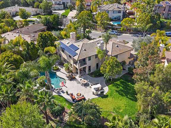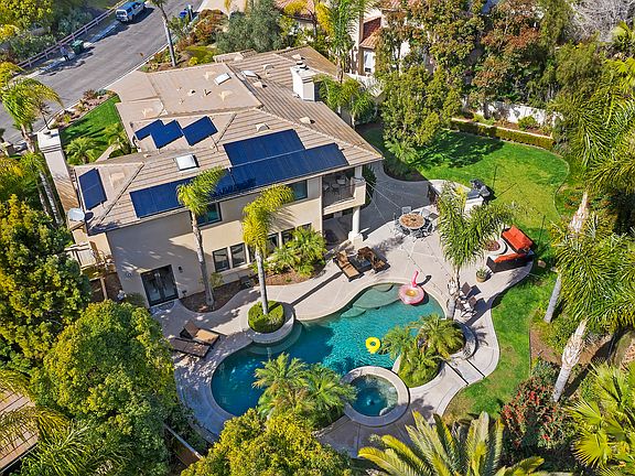 Situated on over a half acre lot, this 5 bedroom, 4.5 bath, 4430 sq. ft. home is located at the end of a culdesac in Olivenhain. Flooded with light, the main level has a dedicated office & guest bedroom. The beautifully remodeled kitchen flows into the family room & is great for family gatherings. The private yard is south facing & perfect for entertaining with a sparkling pool & spa, built in BBQ with island and fire pit for all to enjoy. 3-car garage with wood doors, A/C & solar. No HOA or Mello Roos. Beautiful home with custom wood garage doors and front door. Custom finishes throughout home. Bar area with two wine refrigerators. Remodeled kitchen and bathrooms. New s/s appliances in kitchen. Bonus area by secondary bedrooms upstairs. South facing private backyard with no home behind. Pool, spa, BBQ area, fire pit, and grass area to play. Solar on home. Hiking and horse trails. Best schools in Encinitas. Close to beaches, shopping, and restaurants.