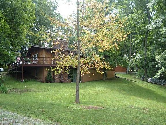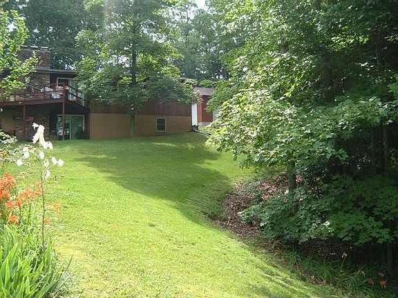 Peaceful Living. Beautiful home. Cedar siding with wrap around deck on a secluded sloped lot with many mature trees. Open floor plan with circular stairs leading to spacious 22x20 Family Room on lower level with walkout to newly poured patio. Updated kitchen with all new appliances. Plenty of storage space in over-sized laundry room. Two car detached garage.