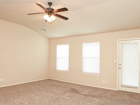 Charming move-in ready home with great curb appeal located in Jenks schools. Updated kitchen with granite counters, gas range and a nice breakfast room. Open floor plan with a vaulted family room. Upon entering the primary bedroom is a separate built-in office nook. Primary bedroom has a tray ceiling and an En-Suite bathroom with double sinks and a walk-in closet. There are an additional 3 bedrooms on the other side of the home & hall bath for privacy. Interior laundry room is a bonus. Backyard has a covered porch and full privacy fence. Wonderful neighborhood pool and park with close access to the highway, shopping and restaurants.