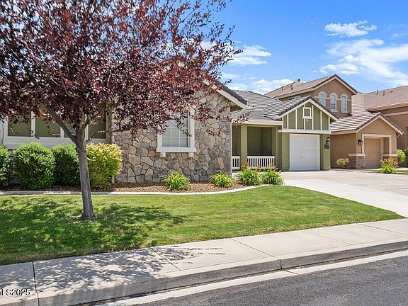 Happy Fourth of July! Come check out this IMMACULATE and UPDATED HOME located in Highly Desirable Double Diamond Ranch in South Reno! Sellers Just finished kitchen update with NEW Solid Cherry Cabinets, NEW granite, NEW under cabinet lighting, NEW Dishwasher, NEW Sink and Faucet, almost new SS Gas Range, Microwave and Beautiful SS Refrigerator. NEW Porcelain Tile flooring in kitchen and great room, dining room. Get this! The 75" TV IN THE FAMILY ROOM STAYS WITH THE HOUSE, AND IT IS ON A HYDRAULIC TV MOUNT so the TV can move in different positions, all done with a remote. All NEW Interior Paint in kitchen,Great Room, Dining Room and Entry ( the rest was painted a couple of years ago), Exterior Painted in last two years. NEW Garage Door AND Opener. 8 NEW Dual Pane Windows, NEW Blinds, NEW Interior AND Exterior lights. Carpet and flooring in the rest of the home is less than 5 years old. Beautiful back yard with a patio, party lights and a Tuff Shed! Water Fountain and Pots of Flowers Stay. Full Gutter system around the home. Handy side patio perfect place for the BBQ with a paver walkway to the backyard or front yard. This is truly a move in ready home that has been maintained and constantly improved . Literally 5 minutes to Shopping, Restaurants, 5 grocery stores, Hospital, Freeways, parks and walking paths in every direction. Lake Tahoe is less than 45 minutes away as are 5 Ski Resorts and Several Golf Courses. The garage Door opener and the Thermostat are "Smart" you can control from your phone. Agents Please see private remarks.