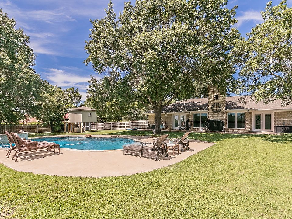 Retreat to the remodeled primary suite with an updated bathroom, and relax in your private backyard oasis—complete with mature trees, a large pool, three outdoor sheds with metal roofs, and a freestanding kids’ clubhouse featuring electric, Air conditioning, a wall-mounted TV, and mini fridge!