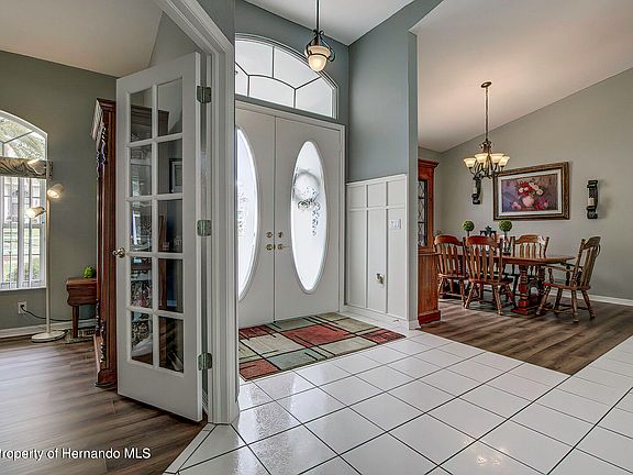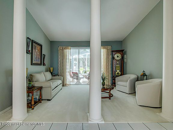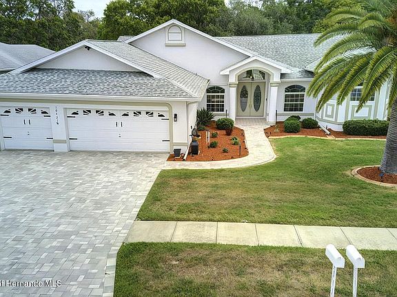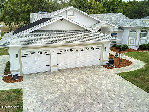 Come be WOWED! at this stunning home in the Links at Seven Hills. This large, beautiful Pool home offers 3 bedrooms, Office/Den, 3 full baths, 3 car garage, formal living room as well family room with fireplace, skylights and sliders to a gorgeous in-ground solar heated pool with spa and spillover fountain. The spacious kitchen has granite countertops, stainless appliances, breakfast bar and dining nook overlooking the pool. New LVT flooring has been installed in the family room, office and dining room. Your master bedroom suite has sliders to lanai and pool with a large walk-in closet, additional closet and linen closet. The master bath has large vanity with dual sinks, jetted tub and separate shower. Beautiful landscaping with new concrete curbing around planting beds that compliment the large wooded yard. Paver driveway and walkways lead to a wonderful wooded rear yard. This home comes with hurricane shutters, and outdoor kitchen for your family gatherings. Only minutes to Suncoast Parkway and easy access to Tampa, as well as local shopping, medical facilities, and other amenities. Furnishings may be available separately.