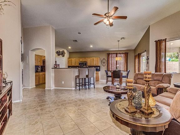 Spacious open floorplan with vaulted ceilings, tile throughout all the living space & newer wood floors in the master bedroom & bath. Split floorplan neutral paint throughout. Large kitchen with plenty of cabinets & counter space . The kitchen opens to the family room great for entertaining. Sitting at your kitchen table you lookout over the pool & beautiful patio area.