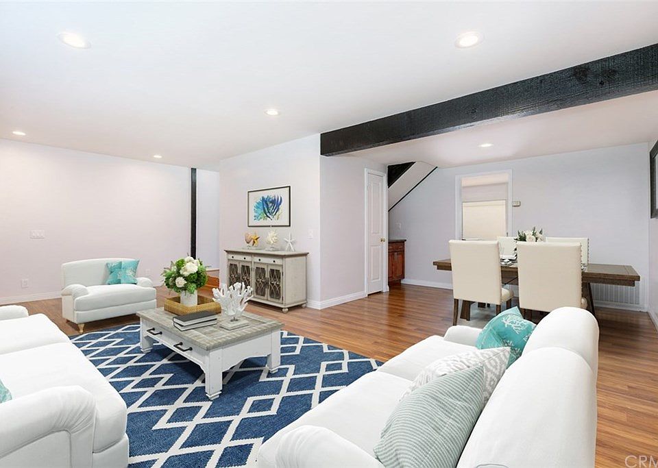 This Beautiful two-story, updated, freshly painted, Tiburon South home is move-in ready and only 5 miles to the beach! The kitchen has granite countertops and an island that moves. All-new just installed stainless steel kitchen appliances including the Refrigerator. Enjoy spacious living space that adjoins to the dining room, and flows into the kitchen and another den. All three bedrooms are upstairs. The large master suite has a walk-in closet and master bathroom with dual sinks. Walk out your glass sliders doors off the kitchen to a spacious courtyard and you have your garage with washer and dryer hookups. The electric dryer is included. This community has five pools, two clubhouses, and a tot lot. It's close to the 405, great shops, dining, Mile square park, golfing, and recreation center. Fountain Valley truly is "A great place to call home" it's a very peaceful, safe, and great community with award-winning Fountain Valley School District. Home is part virtually staged.