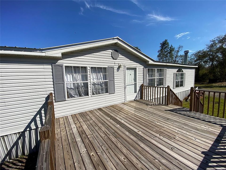 Amazing Opportunity - This 4.08-acre property is in a great location, with a spacious wrap-around porch leading inside to the open floor plan with vinyl plank flooring 2023, in the main areas, and carpet in the three bedrooms. The main bedroom with walk-in closet and the ensuite bathroom with dual sink vanity, and a walk-in shower. The two spare bedrooms with closets, and share a guest bathroom with shower/tub combo. There’s an inside laundry room just off the back patio. The kitchen features Formica counters, double sink with a natural skylight, and an island for chairs as a breakfast area, and overlooks the dining area. Directly behind that is a spacious living room area. New Porch 2023, AC 2016, Roof 2021
