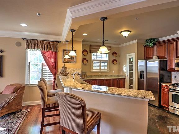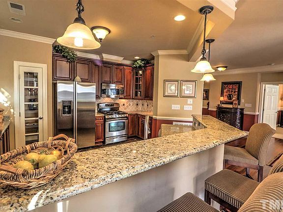 Stunning Waterview Country Club Condo. Fully Furnished and loaded with Premium Features. Enter to gleaming hardwoods, open floorplan, two-sided central fireplace and extensive milllwork. Gourmet kitchen features 42" Cabinets, Stainless, Granite, under cab lght, breakfast bar seatng & extra built-ins. Overszd Master Suite w/sitting area and view. Spa Bathroom w/garden tb, sep shwer, dble vanity. 1 Car Detached Garage. Walk to Brier Creek Shopping & Rstrnts.
