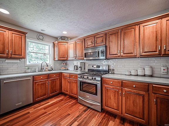 Welcome to this stunning brick home that perfectly blends comfort, functionality, and style. Situated on a little over an acre lot, in the very desirable westside (St. Philips) area. This well-maintained property was built in 2009 and offers 3 bedrooms, 3 full bathrooms, and a convenient half bath. The spacious primary bedroom includes a walk in closet as well as a walk in tile shower. Inside, you’ll find a bright and open-concept living room with real .75” hardwood floors and Amish kitchen cabinets with plenty of space, ideal for everyday living and entertaining. The home also features a finished walk-out basement, providing versatile space for a family room, game area, or guest suite with a full bathroom featuring a tile shower. Step out onto the back deck and take in the peaceful, tree-lined views—a perfect setting for relaxation and outdoor gatherings. Additional highlights include a 3-car attached garage, offering plenty of space for vehicles, storage, or a workshop. The roof is only one year old for your peace of mind! This move-in-ready home combines timeless brick construction with modern amenities and room to grow—inside and out. Don’t miss your chance to make it yours!