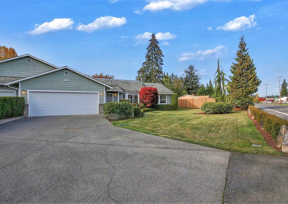 Move in ready & well maintained rambler w/open floorplan features large bay windows, cathedral ceilings & skylight allowing plenty of light throughout. Chef's kitchen w/breakfast bar, dining room w/ access to deck. Spacious living area w/gas fireplace. Master suite w/full bath & WIC. Central A/C & plenty of storage space. Oversize 2 car garage, sprinkler system & large professionally landscaped & fully fenced yard! All appliances stay! Great location, close to Everett mall, Boeing & I-5. Low HOA!