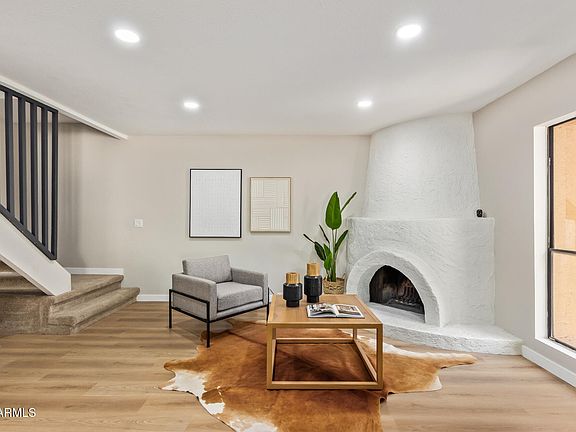 Welcome to this charming 2-bedroom townhome in Pointe Tapatio! You're welcomed by a cozy great room with a soothing palette, subtle recessed lighting, stylish wood-look flooring, and a warm fireplace for intimate evenings with loved ones. The kitchen comes with sleek quartz counters, wood shaker cabinets, a tile backsplash, brand-new SS appliances, and a two-tier peninsula with a breakfast bar for casual meals. Upstairs, you'll find two well-sized bedrooms, each a tranquil retreat featuring soft carpeting and closets with mirrored doors that enhance the sense of space. Unwind at the end of a long day in the charming backyard, complete with a paver patio for al fresco dining or simply enjoying the outdoors. The Community includes a pool for refreshing dips. Make it yours now!