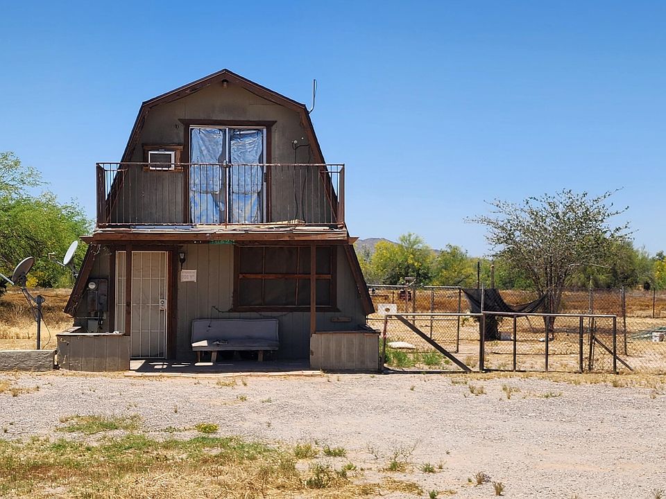 Handyman Special! This unique A-frame house sits on 3.7 acres of horse property and is located just a few minutes out of town on a paved road with spectacular mountain views. Hooked up to Thunderbird Farms water, so you don't have to haul water or worry about shared well restrictions. Featuring a family room, kitchen, and bath downstairs, and 2 bedrooms upstairs. The home has some fencing and stalls, and backs to a wash so you can easily take your horse out for a ride.