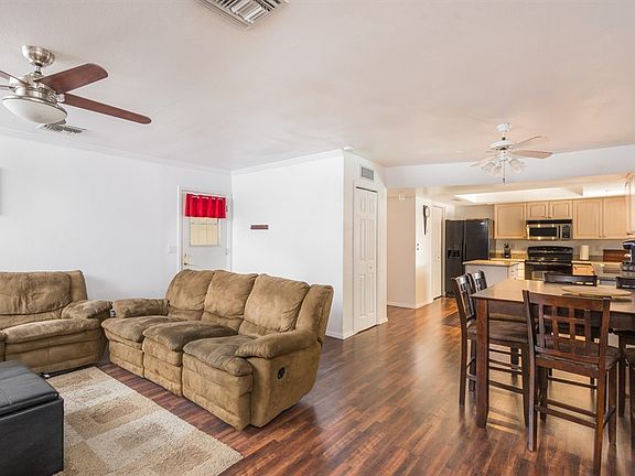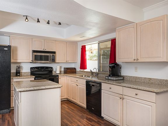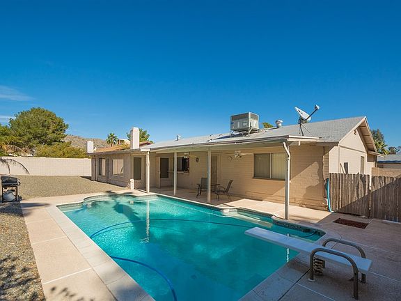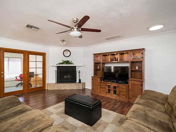 This home offers 3 bedrooms + den & 2 baths in 1656 square feet with separate living and family rooms. The enclosed Arizona room offers an additional 200 square feet of living space! The den could easily be a 4th bedroom; it's just missing a closet. The family room is open to the kitchen & dining area and has crown molding & a corner fireplace. The kitchen has granite countertops, black/stainless appliances, pantry & island. Refrigerator included! The low-maintenance backyard has an extended covered patio w/ceiling fans & a diving pool with new pool pump. This home also has a 2 car garage w/storage cabinets, service door to the backyard, RV gate & concrete slab, and NO HOA! Newer A/C, wood laminate floors & master bedroom walk-in closet. Hiking trails & park close by. See today!