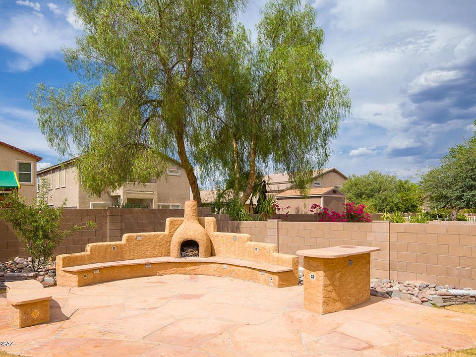 Nice 4 Bedroom, 2.5 Bath Home. Tasteful granite counters and backsplash in the kitchen, upgraded ceramic tile and wood flooring on the entire ground floor, large den, office area off the family room. Wrought iron stair railing leads up the stairs to a massive master suite with a resort like master bath with a custom glass shower enclosure, upgraded vanities and more. A large loft and 3 more rooms finish off the upper level. The backyard is an entertainers dream with a barbecue area, bunco seating around a kiva fireplace, large flagstone patio, cool grassy area and more. Huge Savings on Electric. Solar City Lease payment required. All pets must be preapproved by owner with extra deposit. Vail School District. Community Park and Pool.