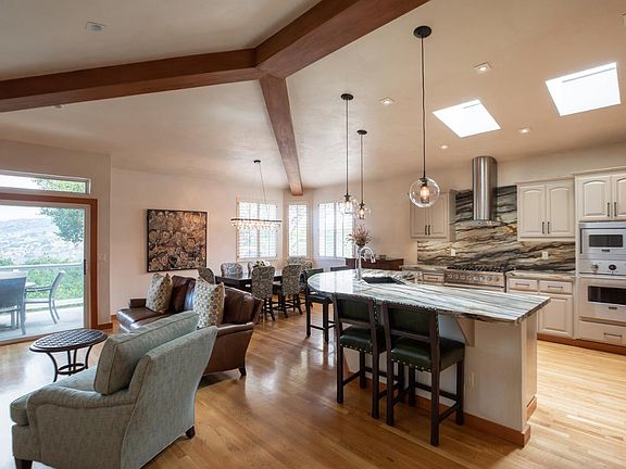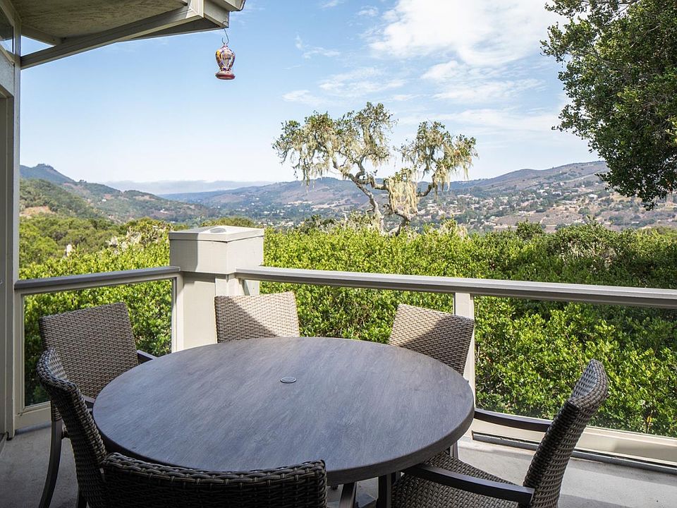 Perched above the 12th tee box of Carmel Valley Ranch golf course sits a beautiful Dave Pond remodeled, 4-bedroom, 4½ bath Summit home. This home features scenic filtered views to north & west from the deck, family room & primary bedroom. Hardwood floors encompass the main living area, including the living room, dining area, family room and kitchen. New appliances include a Viking 6 burner stovetop, Wolf oven and Microwave, as well as a Subzero refrigerator and Meile dishwasher. All interior walls have been custom-plastered. Solid wood doors throughout the house feature premium hardware, including the unique front Dutch door. New wood beams have been installed in the living room, family room and kitchen ceiling. The downstairs includes 3 bed with bath, with one bedroom converted into an office with built-in cabinetry. This immaculate contemporary home has been reimagined, utilizing the highest quality materials for those seeking a turnkey Carmel Valley Ranch home.