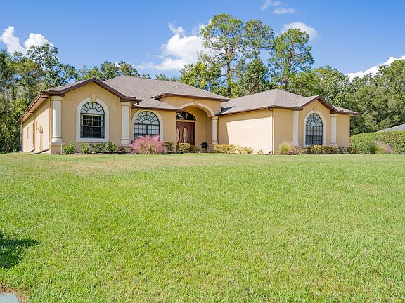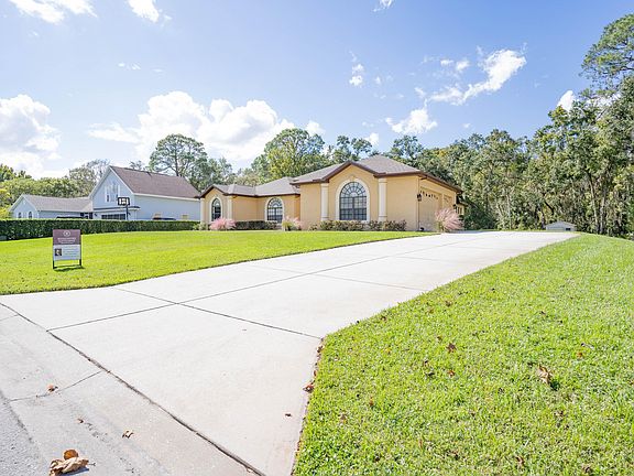 Active with Contract - Florida Elegance and Fine Living awaits a new owner. Come preview this meticulously maintained 4-bedroom, 2.5-bathroom, 3-car garage, Pool home located on over 2 acres in the affluent gated community of Golden Acres. This beauty boasts a newer Roof (2016), recently resurfaced pool deck with a self-cleaning system, newer HVAC system, and solar-heated hot water heater. Owner installed an iron-out irrigation system and water treatment system for stress-free maintenance and convenience. The large kitchen is lined with quartz counters, showcasing stainless steel appliances with a double oven, perfect for the holidays and family gatherings. The screened pool area was prepped for a Gen-Air, water and sink to really maximize entertaining outdoors. Full surround sound installed throughout the home, perfect for sporting events or movie night. The spa-like master bath has both a soaker tub, stand up shower, and dual sinks. Plenty of elbow room for the morning routines. Flooring consists of engineered hardwood and tile mixture. Both the Formal Living Room and Family Room have endless possibilities. Kitchen has a warm nook, or the Formal Dining Room can welcome your family meals. Owners installed a pest control system that is actively serviced by a local company. The outdoors is perfect for the Nature-Lovers, deer, turkeys, birds, turtles, and more are common visitors to the property. Nestled in mature and lush landscaping, this property is located at the beginning of a quiet cul de sac shared with only a few other homes. Golden Acres Estates has a low HOA and