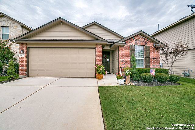 Make this extraordinary Express home yours. Built in 2015, this hidden gem is nestled in a quiet setting within Wildhorse at Tausch Farms. A stunning home, it provides a brick exterior, open floor plan, washer, dryer, refrigerator, water softener, sprinkler system, beautiful above ground swimming pool back yard for entertaining, three bedrooms, two full baths, an amazing covered patio, and a two-car attached garage. This home offers an inviting entry way that leads into a formal dining room. With a welcoming living area it is beautifully open with high ceilings as this space flows seamlessly into a large island kitchen with granite counters, ample custom cabinetry, an expansive island with casual bar seating, GE appliances, and a gas stove. Perfect open area for family gatherings and entertaining. A private hallway leads you to two spacious secondary bedrooms, with full bathroom, and each with closets. Another private hallway leads you to the master suite which beautifully accommodates a large bathroom with tile shower, dual vanity, and a walk in closet. This residence is just amazing and a must see.