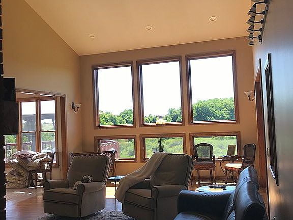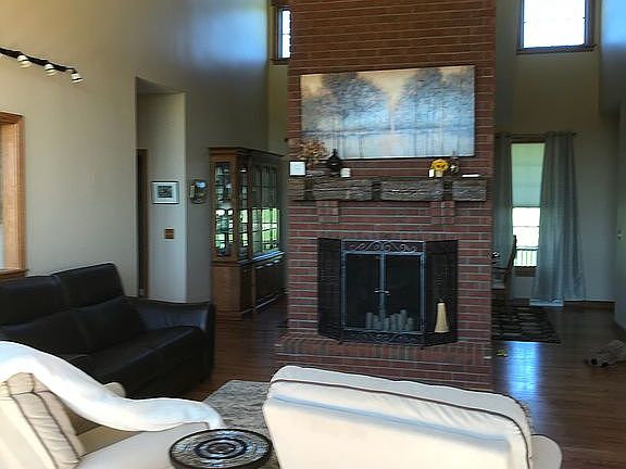Beautiful home with one story living located on 10.42 acres. You will enjoy the nature views of sprawling greenery and a meandering creek to kayak in! This open concept home is perfect for indoor and outdoor entertaining. Watch gorgeous sunsets from the huge back deck or from inside through the walls of windows and skylights. Vaulted ceilings throughout the family room, kitchen, dining room and library, and 10 foot high ceilings throughout the bedrooms and rest of the first floor, make this home feel expansive. The two story, double sided fire place is a great focal point separating the dining room and family room. The exercise room/office is located in a quiet area, and could be used as a 4th bedroom as well. The wrap around front porch is a great place for a cup of coffee while enjoying the park-like front yard. The walk out finished basement can be accessed from the garage but also has a glass sliding door into the backyard and full windows, with a full bathroom, kitchenette and fireplace so it can be used as a game room or as an in-law apartment. Numerous Recent updates Include bathroom and kitchen remodels, a new roof, new hot water tank, along with others. This home is a serene landing place that gives you peace and beauty 365 days a year.