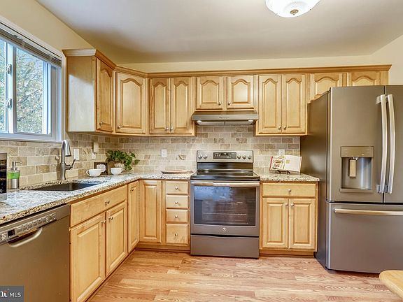 YOUR HOME SWEET HOME AWAITS! As you enter, the hardwood foyer floor invites you. A few steps away is the table space gourmet kitchen remodeled with all new appliances, granite counter tops, tile back splash, wood like flooring with a slider to the great outdoors. A sun drenched, separate dining room is off the kitchen and opens to a light and airy living room. The ample owner's suite features 2 closets, and a gorgeously appointed, updated bath. Two additional bedrooms and an updated hall bath complete this level. Down the stairs is a massive family room with slider to the brick patio. A bedroom and remodeled bath give you flexible space for an au pair, in-laws, or friends to visit. Laundry/multi purpose space complete this level. Additional interior features are all new carpeting, completely new heat pump system, newer high quality windows throughout, some new lighting & freshly painted surfaces. The exterior features brick and vinyl exterior with freshly painted trim, a newly resurfaced drive, newer garage doors and a highly usable fenced back yard sited next to a walking trail with 16 X 16 deck and patio.Highly rated schools, a location convenient to the expressway, shopping, and restaurants with the feel & charm of a small town.