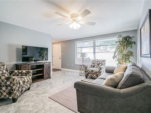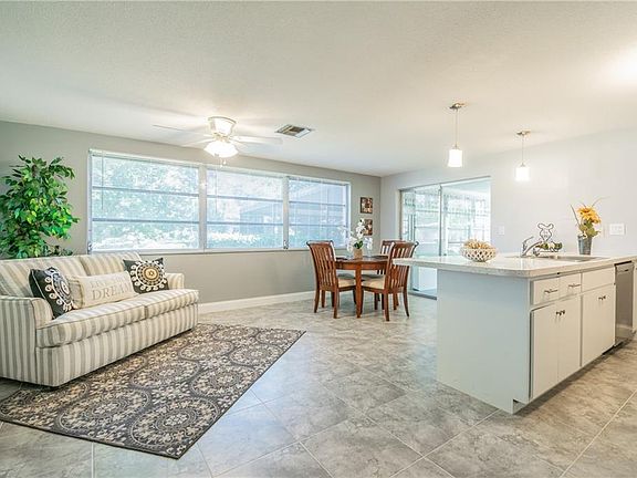 This is the home you have been waiting for!! 2 bed, 2 bath, over-sized 2 car gargage, a bonus Florida room that is fully air-conditioned, and a very large screened lanai with a wonderful view of the creek in the backyard is ready for new owners. The master is a geat size with sitting area and walk in closet. The kitchen has been remodeled with brand new stainless steel appliances, gorgeous tile floors, a large counter-top bar and an open concept with plenty of space for the perfect table. This home is NOT in a flood-zone and is close to shopping and major highways. Make your appointment to see it today!