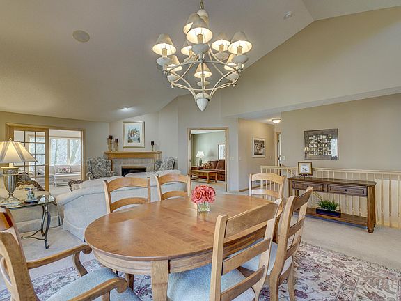 Fall in love with this main-floor living, meticulously maintained, and sunny townhome! Located on a quiet cul-de-sac, this home boasts 3 bedrooms, 3 baths and is the largest layout in the neighborhood! The sunny first floor has a well-appointed layout, including a primary bedroom with a large, updated full bathroom, an office/den, a warm and inviting sunroom, an immaculate kitchen with granite countertops, and an expansive dining/living room. Cozy porch among the treetops. The vaulted ceilings and large windows give a grand sense of openness and warmth. There are two gas fireplaces (living room and family room). The deck is just off the main level. The lower level has a spacious family room, a bar area, two additional bedrooms, a large storage area, and a walkout with patio! Perfect for entertaining. The deck and patio overlook a tree-lined, private backyard.