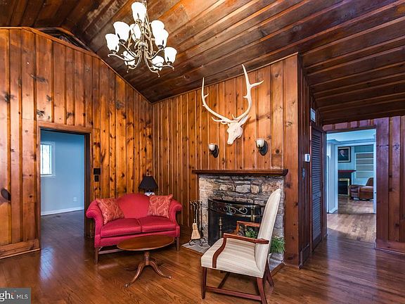 Charming log cabin with wood floors, fireplaces, patio, garage on well landscaped grounds
